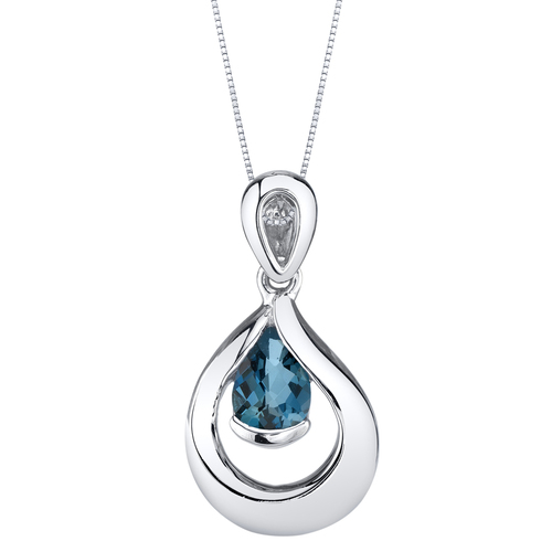 Sterling Silver and London Blue topaz pendant. This pendant contains one 3/4 Blue Topaz bezel set into the center of this fashionable necklace. Both the chain and pendant are rhodium plated so that they will not tarnish during normal wear. The value of this pendant is $140.00.